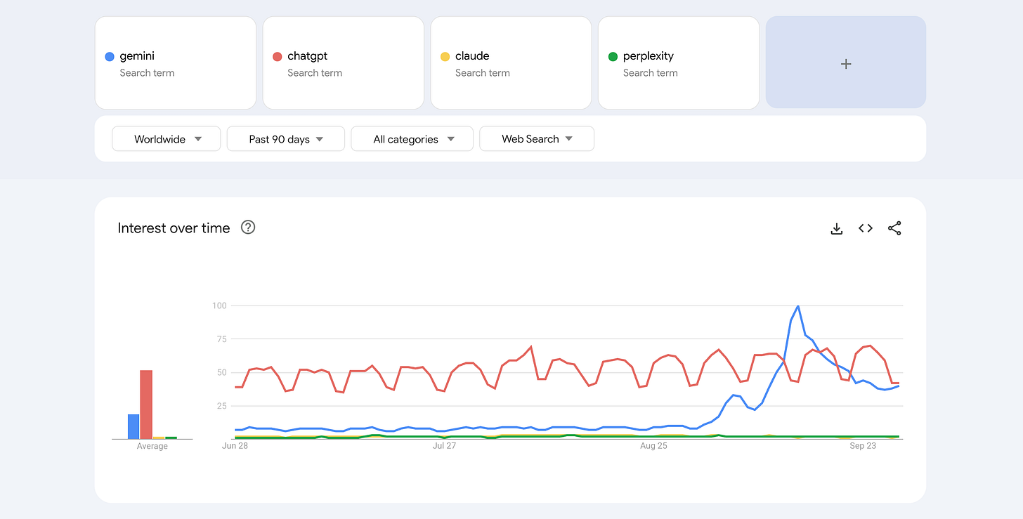 The model was such a success that Gemini jumped to the top of the American App Store, and Google Trend data clearly shows that interest exploded around the Nano Banana release.
