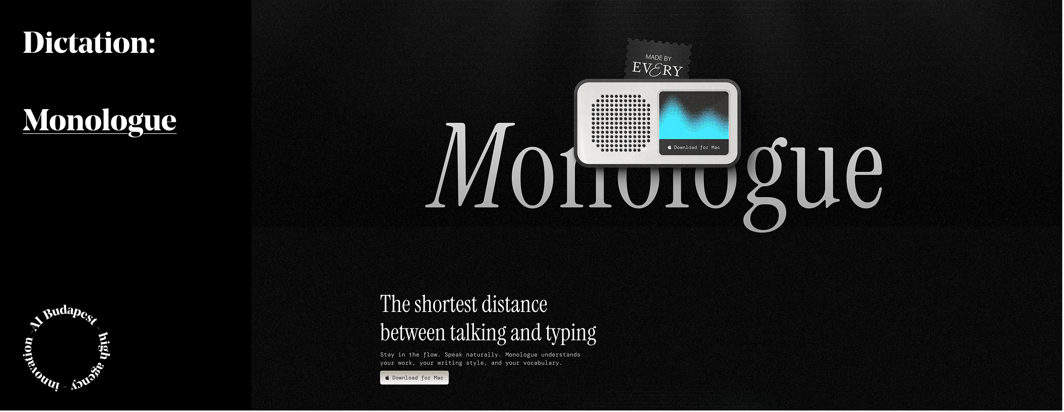 Monologue helps with this: it’s an intelligent dictation tool that interprets what I’m saying, knows me, sees my screen, understands the context, learns from me, and writes down the recorded text in both Hungarian and English as a coherent, synthesized version.
